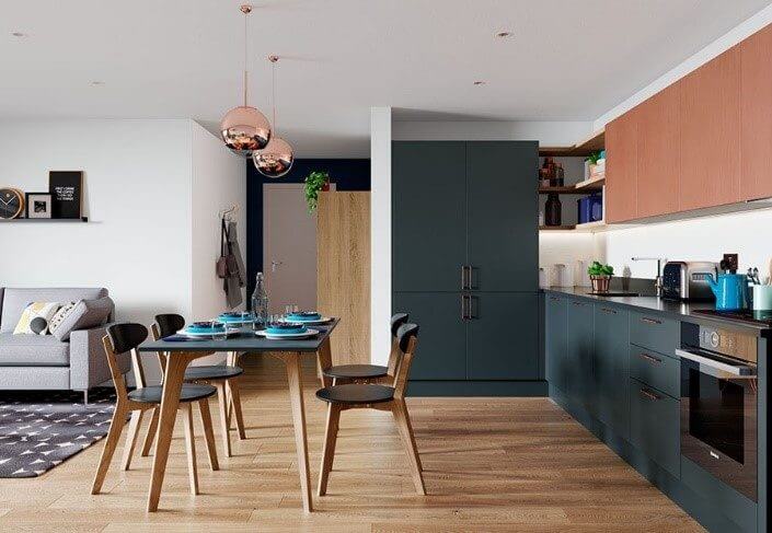 If you have a compact kitchen, as well as maximising your primary cabinet storage, you might want to think about utilising ‘forgotten spaces’. These will vary depending on your home so you may need to get creative, but often overlooked is the small gap left around the sink. With some manufacturers offering specially designed drawers, this space can be a great nook to stow cleaning items or utensils. Your kitchen designer may also be able to create a bespoke cupboard that provides access to the space, this can be a great cost-effective solution. In older properties with high ceilings, continuing wall units to the full height of your room can provide storage for items you don’t need to access regularly. When it comes to utilising forgotten spaces, never be afraid to think outside the box.