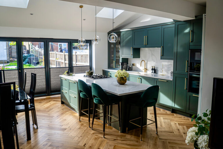 The Client’s Brief The homeowners wanted a kitchen that felt elegant yet full of character – a space that would blend traditional craftsmanship with a contemporary, high-end finish. They were drawn to deep, heritage tones and luxurious metallic details, but…