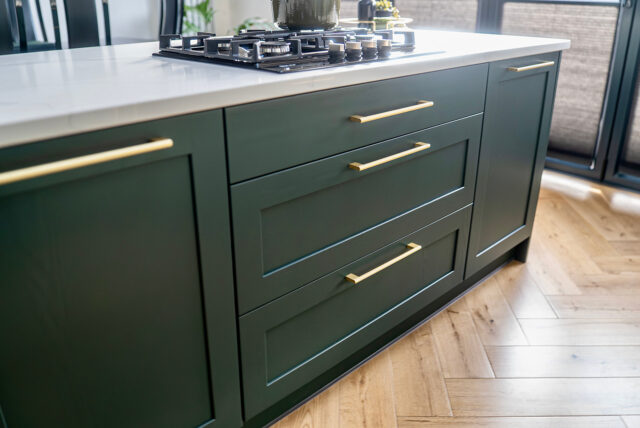 The homeowners wanted a kitchen that felt elegant yet full of character – a space that would blend traditional craftsmanship with a contemporary, high-end finish. They were drawn to deep, heritage tones and luxurious metallic details, but wanted to avoid anything overly modern or clinical. Functionality was also key, with the design needing to integrate premium appliances and clever storage while keeping the overall aesthetic calm and cohesive.