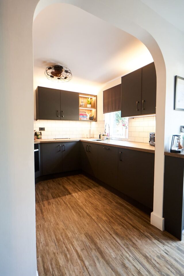 “Designing Emma’s kitchen was an absolute joy! Witnessing the transformation from start to finish was truly a showstopper. We completely revitalised the outdated kitchen with a sleek yet moody design. We blended an industrial aesthetic with the warmth of oak, creating a modern yet inviting atmosphere in the kitchen and the new dining space. The finishing touches, inspired by everything Disney, make this kitchen one of my all-time favourites!” – Lucy, Kitchen Designer