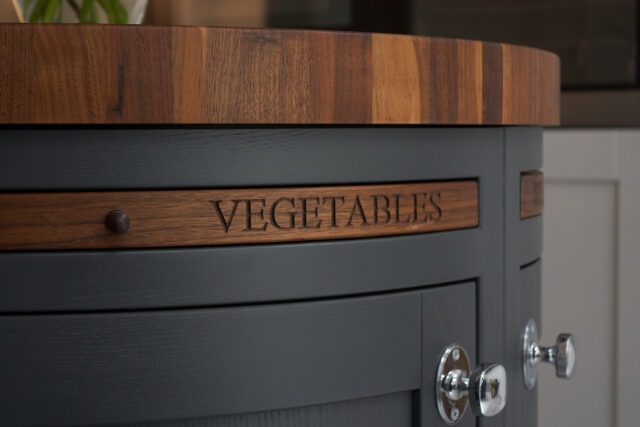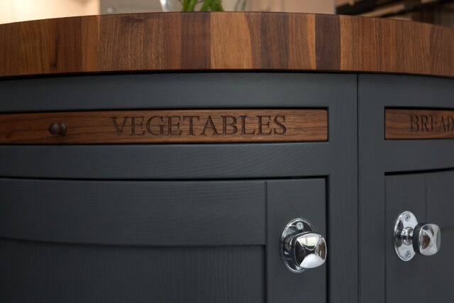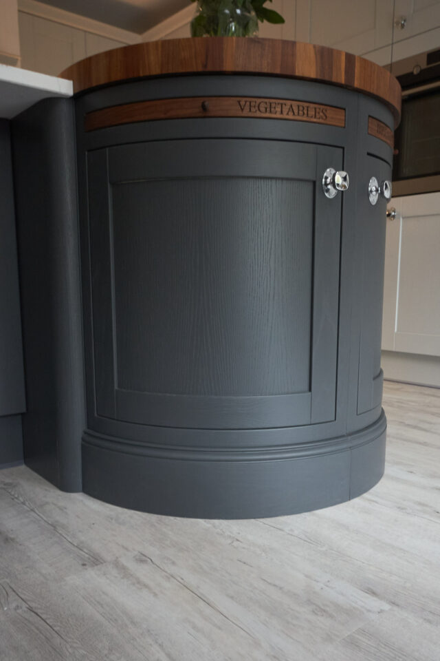 Mr and Mrs B chose a beautiful Madison shaker-style kitchen, which is visually appealing from all angles. From the crisp straight lines of the L-shaped cabinetry to the soft curved edges of the statement island painted to order in graphite, this is a unique and inviting space. It features a curated mix of textures, from the warmth of the walnut in the butcher’s block to the marble-patterned composite stone worktop; there is so much to explore in this interior. This design highlights how kitchens are so much more than a culinary space; they are a room to be enjoyed, and where life’s moments happen. Mr and Mr B are particularly pleased that their kitchen makes a statement and enjoy showcasing this to visitors.