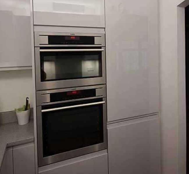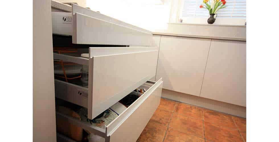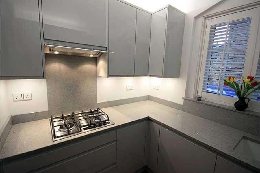 By booking a design consultation with Dennis, Ream’s kitchen designer, Mr and Mrs Butcher from Blackheath, London, were able to start designing their kitchen. As the kitchen was relatively small, Dennis created a designed that made the most of the space, with a contemporary design using Second Nature Remo kitchen doors in Dove Grey – a beautiful handleless kitchen with high gloss and quartz worktops.