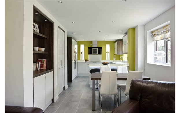 We decided on white gloss acrylic doors with glass-effect edging to create a modern, stylish look and add extra light. This was combined with a wrap-effect using textured matt wooden panels, adding the homely feel Eloise was looking for. The use of Urbus Tiles meant that the family could install underfloor heating within their kitchen them to have full control of the temperature at any time of the year.