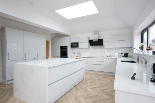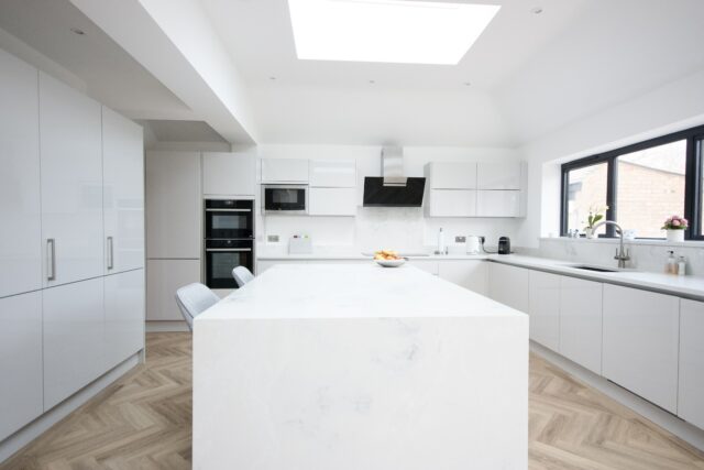 Following the completion of their new extension, Mr. and Mrs. Howe were in search of a kitchen that could seamlessly integrate into their expanded space. Additionally, they desired a striking yet neutral aesthetic for their kitchen, aiming to create a design that would truly make a statement in their new living area.