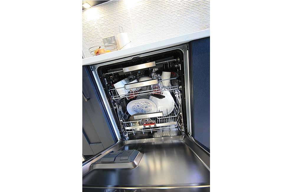 This kitchen was packed with the latest appliances from a Quooker Flex tap; the award winning AEG Comfort Lift dishwasher, AEG Combo hob with integral extractor, slim wine cooler, Space Tower storage, and a pull-out larder.