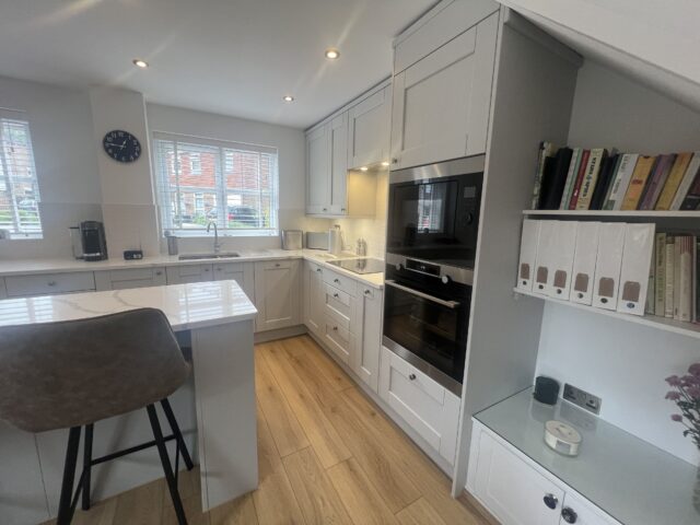 For this project, the client wanted a kitchen that felt classic and timeless, while still offering the practicality needed for everyday living. With the added challenge of designing around the staircase, the aim was to create a made-to-measure layout that maximised every inch of available space. The finished design needed to feel bright and traditional, with generous storage, a welcoming island for working and gathering, and a calm, cohesive look throughout.